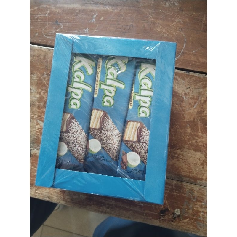 Kalpa wafer cokelat kelapa dengan kombinasi wafer renyah dibalut dengan cokelat yang tebal dan ditaburi dengan parutan kelapa asli yang gurih dan banyak yang enaknya luar biasa