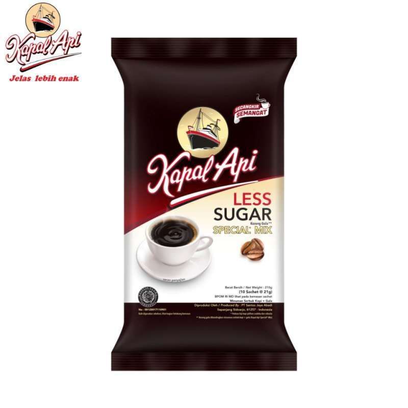 Kapal Api Special Mix Kopi Less Sugar Kopi Instan [10 Sachet / 19 Gram]. Kopi special Mix Less Sugar terbuat dari biji kopi pilihan. Menggunakan teknologi canggih sehinnga menghasilkan rasa & aroma kopi yang nikmat. Cukup seduh dengan air panas. Berat bersih : 19 g / 10 sachet