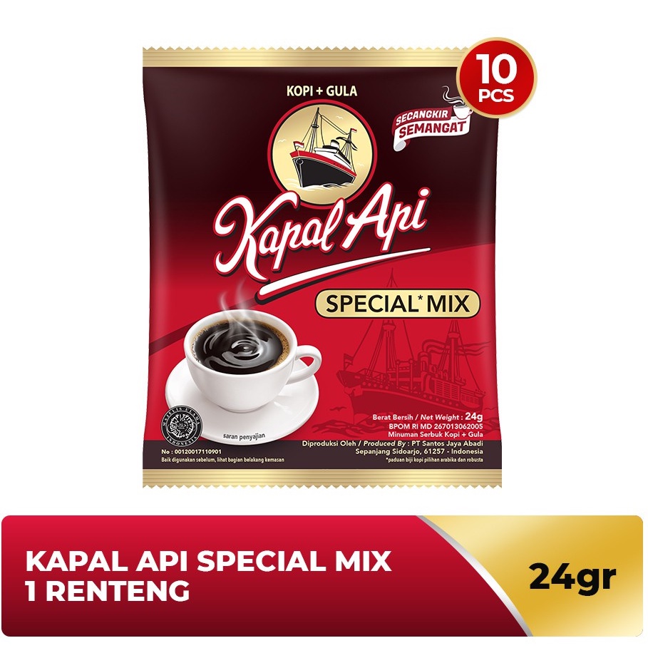 Kapal Api Special Mix merupakan paduan tepat dari biji kopi pilihan dan gula murni, diolah dengan mesin paling modern untuk memudahkan anda membuat kopi yang harum dan enak.