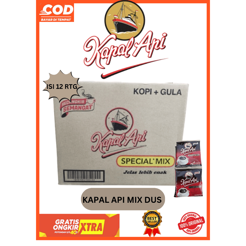 Nikmati aroma dan cita rasa khas kopi legendaris dengan *Kapal Api Mix* dalam kemasan *dus isi 12 Renteng*. Cocok untuk menemani setiap momen harian Anda – pagi yang produktif, sore santai, atau obrolan bersama teman. Dan sekarang, lebih hemat dengan **promo spesial**!
