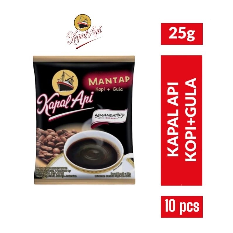 KAPAL API Mantap Kopi Gula 10x25gr / Kopi Kapal Api Mantap Kopi Gula Renceng 10 pcs