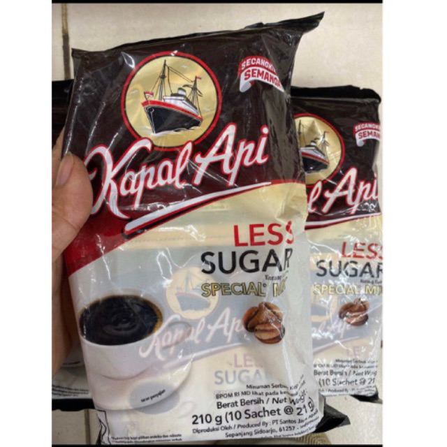 Kapal Api Special Mix Less Sugar adalah kopi yang terbuat dari biji kopi pilihan dan sedikit gula. Kopi ini memiliki ciri-ciri sebagai berikut: Rasanya tidak terlalu manis atau pahit, Aromanya khas Kapal Api, Diproses dengan mesin modern.