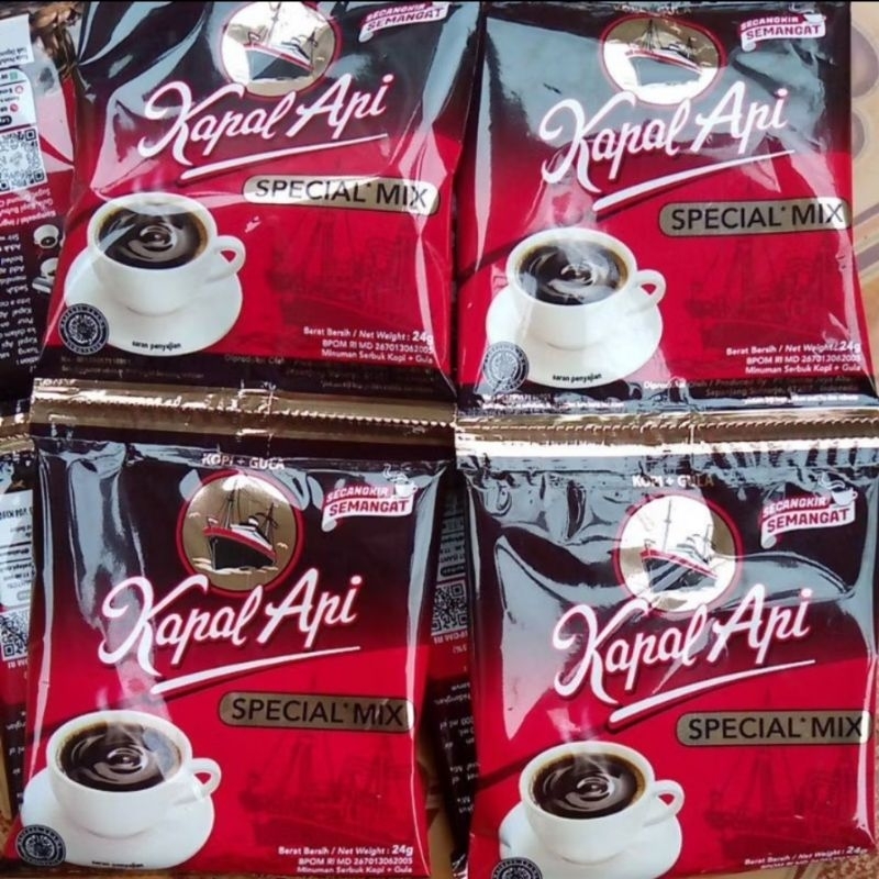 Kopi Kapal Api terbuat dari biji kopi pilihan dan diproses dengan mesin yang paling modern yang menghasilkan kopi berkualitas tinggi dengan Aroma terbaik dan Rasa yang enak. Kapal Api Special Mix Dibuat dari Biji kopi pilihan yang diolah dengan mesin yang paling modern dan campuran gula murni. Menjadikannya paduan spesial dari kopi dan gula. Kemasan Praktisnya, membuat kopi anda siap seduh dengan aroma kopi senikmat selera pilihan. Mulai hari Anda dengan secangkir semangat untuk Indonesia dengan Kopi Kapal Api