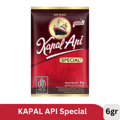 Kopi Kapal Api Special terbuat dari paduan biji kopi berkualitas "Special" menghasilkan aroma dan rasa yang jelas lebih enak, siap memberikan semangat untuk memulai hari.