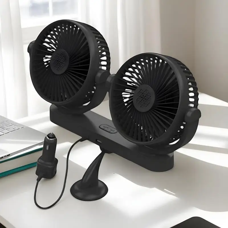 12/24V Cooling Car Fan Double Head Suction Cup Fans USB Charging Automotive Electric Fan For Home Outdoor Car Office