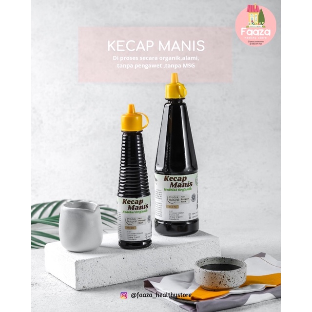 Kecap manis terbuat dari kedelai organik yang di proses secara alami, di buat secara tradisional dengan rasa manis manis dari gula jawa organik, dengan bumbu dari rempah-rempah asli Indonesia dan pilihan.