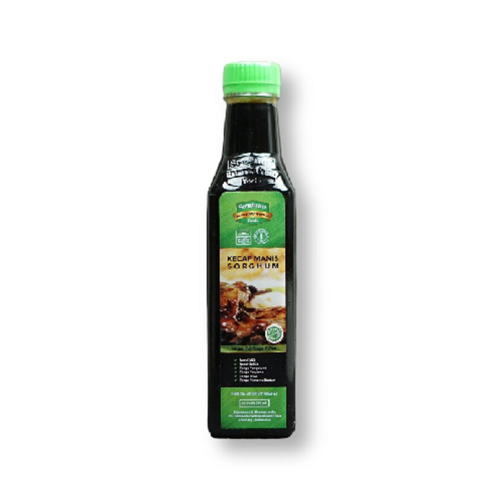 Kecap sorghum diproduksi dari biji sorghum terbaik yang mengandung mineral (kalium, zat besi, kalsium, magnesium), protein & 9 asam amino esensial serta antioksidan yang bermanfaat bagi tubuh.