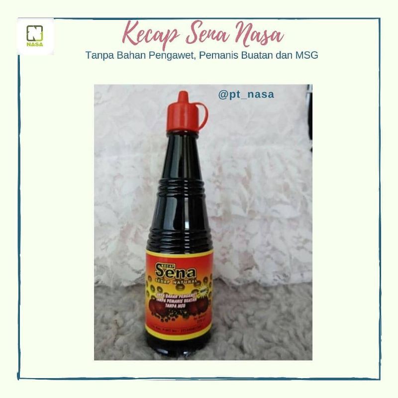 KECAP SENA merupakan kecap sedap yang terbuat dari biji kedelai hitam pilihan, gula aren, garam dan bahan – bahan pilihan lainnya serta rempah – rempah yang bermutu dari alam Indonesia yang diproses secara tradisional. KECAP SENA adalah kecap organik tradisional yang dibuat dari bahan-bahan alami organik tanpa menggunakan zat pengawet, pewarna ataupun zat tambahan. Kecap ini diproduksi dari kedelai hitam, gula, hingga garam organik pilihan.