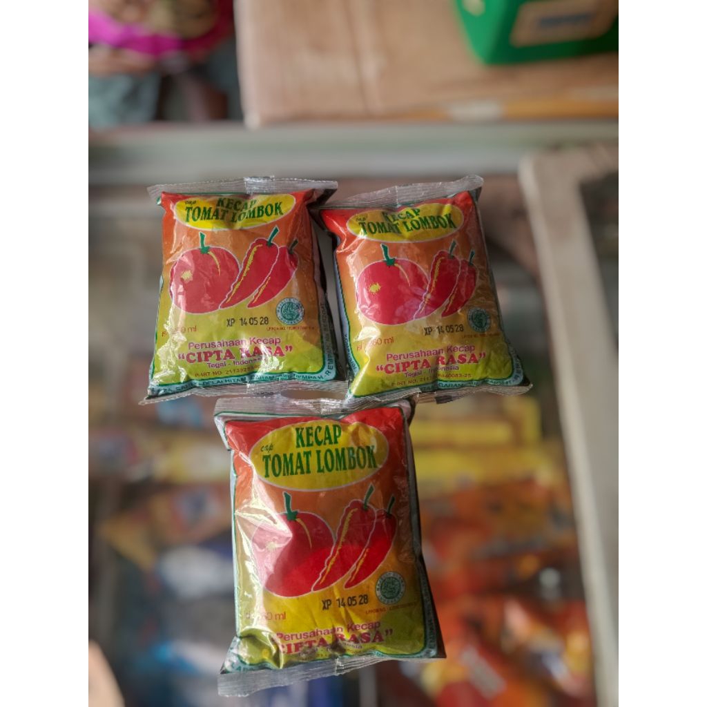 Kecap Manis Cap Tomat Lombok Kemasan Bantal Terbuat dari bahan bahan berkualitas sehingga mengasilkan cita rasa yang pas Kecap ini banyak digunakan oleh warung sate kambing muda khas tegal, warung sauto, dan mendoan khas Tegal , rumah makan, Warteg serta ibu rumah tangga Barang ready dan selalu baru
