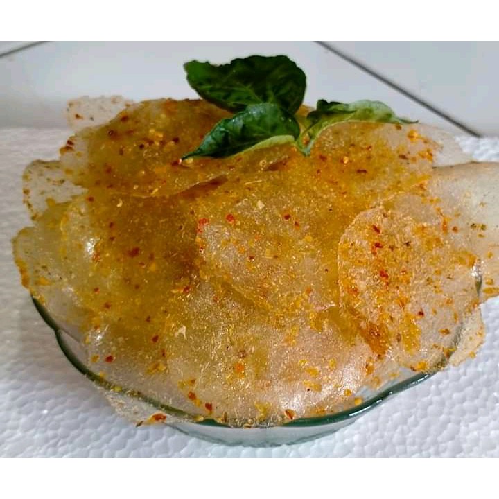 Makanan ringan yang tipis dan renyah terbuat dari bahan dasar singkong
