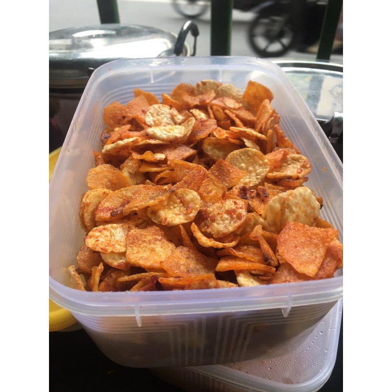 di buat saat ada pesanan jadi masih garing dan renyah di jamin enak karna di tambah sambel. tidak pedas kali. kami tidak ada menambah kan pengawet sedikit pun.