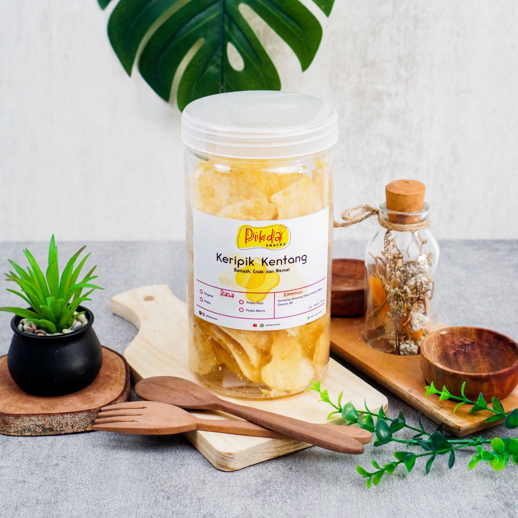 Keripik Kentang merupakan inovasi makanan ringan yang diproduksi dari kentang asli. dibuat dari kentang pilihan langsung dari petani Garut, Jawa Barat dan diolah dengan berbagai macam bumbu seperti Cabai, Bawang, Daun Jeruk, Penyedap Rasa, dll.