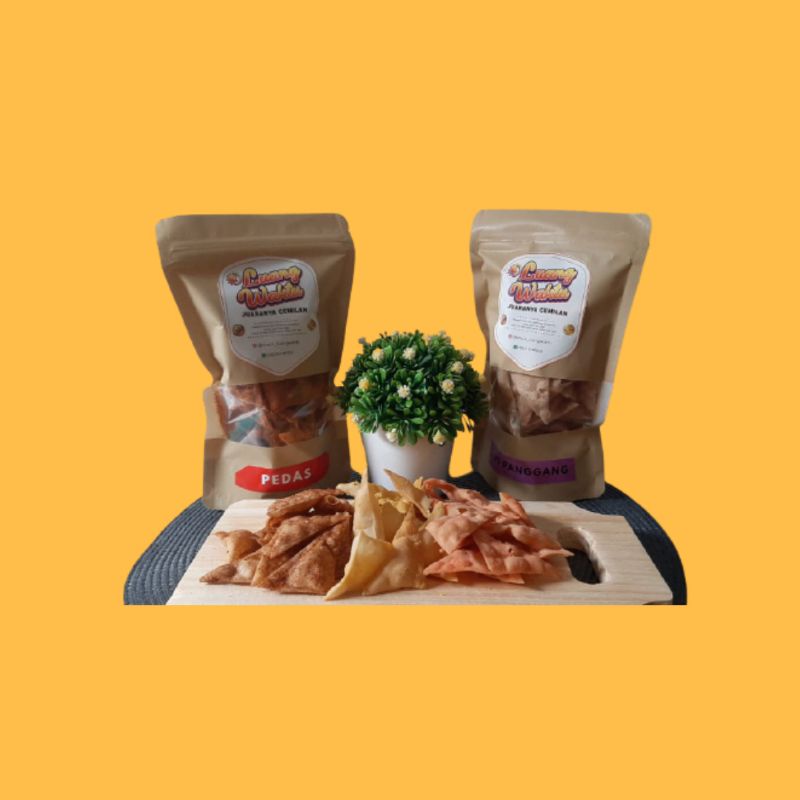 Halo keripik pangsit rasa disini, snack luang waktu menyediakan berbagai snack pilihan favorit sobat ngunyah, dari bahan yang berkualitas, dengan rasa dan harga yang pas, pas dikantong pas rasanya dimulut kemasan yang praktis bikin lebih mudah untuk dibawa kemana- mana