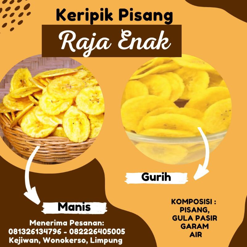 Keripik pisang raja enak rasa manis yang di buat dari pisang pilihan yang baik.