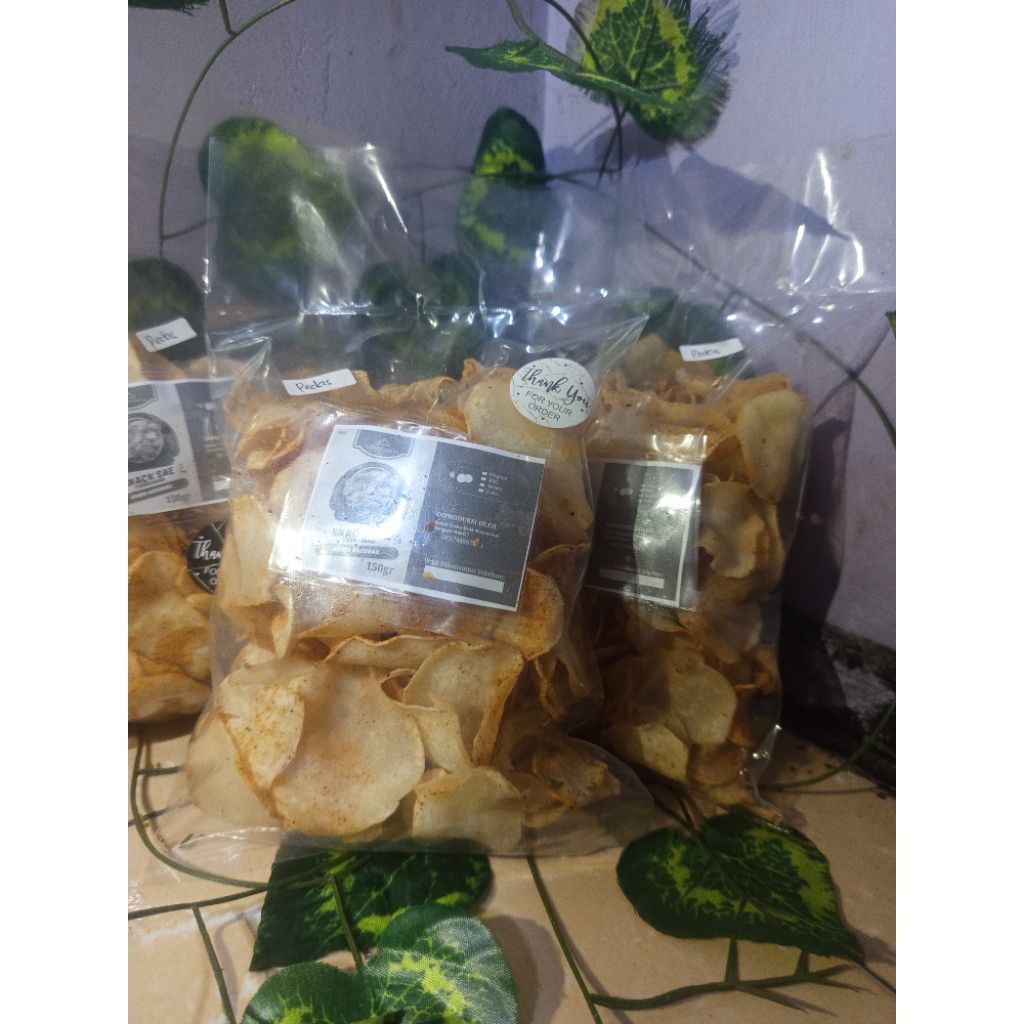 KERIPIK TALAS RASA PEDAS DAUN JERUK. 150 gram GURIH DAN RENYAH