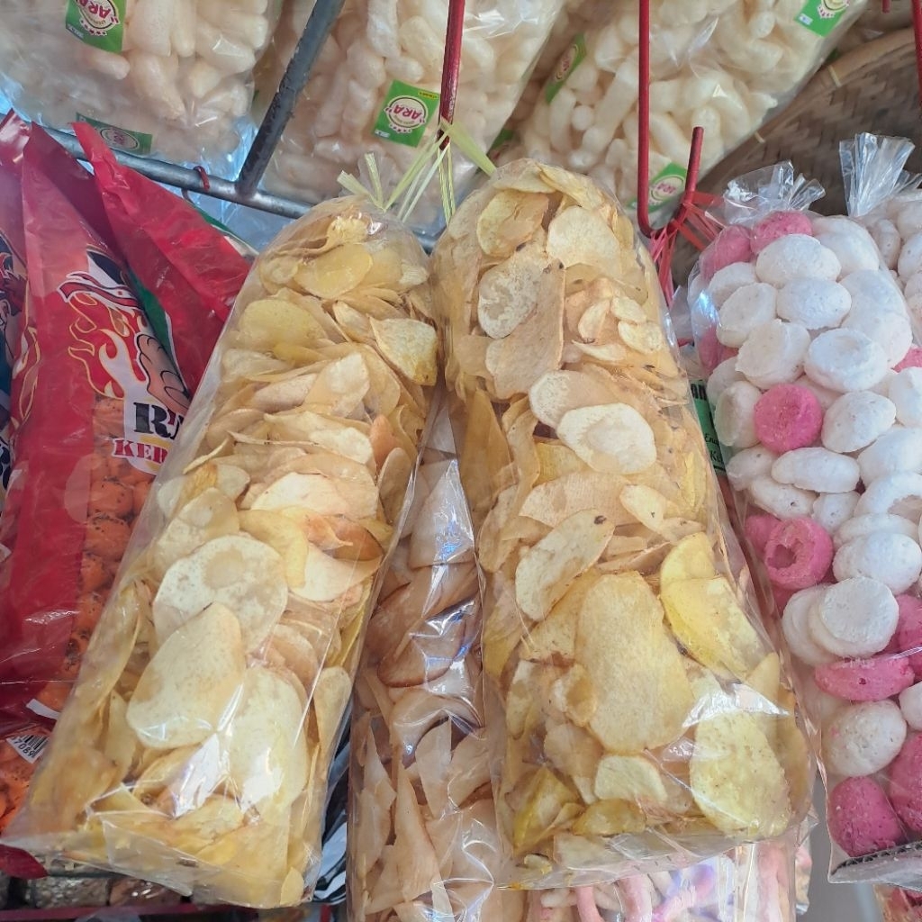 Keripik talas dengan rasa yang asin gurih dan tekstur yang renyah cocok untuk cemilan yang menyenangkan