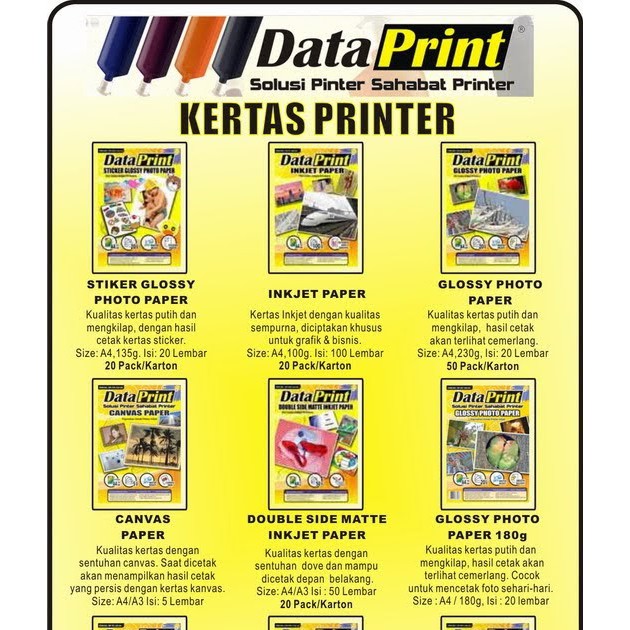 DataPrint Double Side Matte 220 gsm A3 adalah kertas dengan permukaan yang kesat atau tidak mengkilap dan dapat dicetak di kedua sisinya.