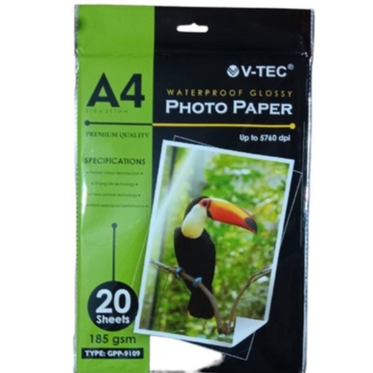 KERTAS FOTO VTEC A4 185GR GLOSSY PHOTOPAPER