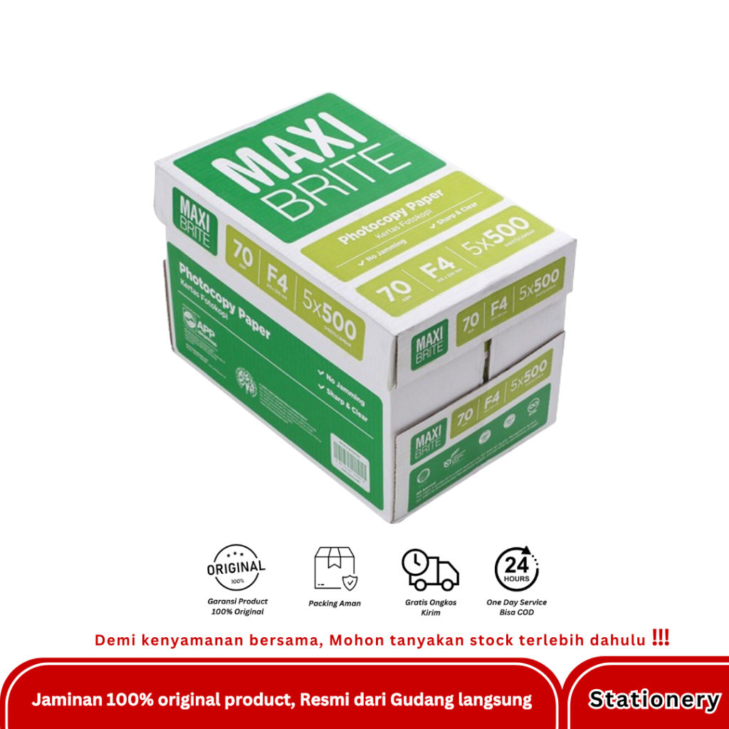 KERTAS HVS MAXI BRITE A4 / F4 - PER BOX ( 5 RIM )