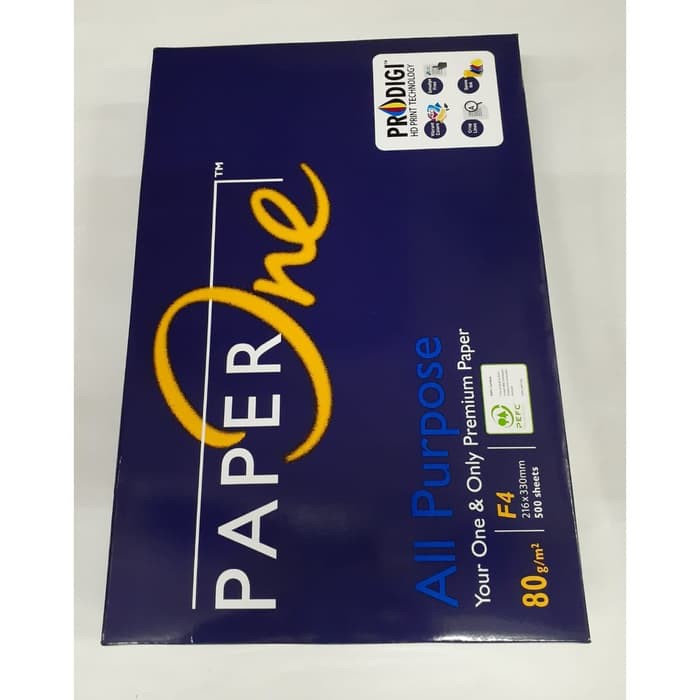 Kertas HVS Paper One F4 80 gram isi 500 lembar.