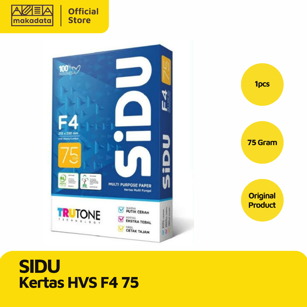 KERTAS HVS / PRINT / FOTOCOPY SIDU F4 75 GRAM (1 RIM)