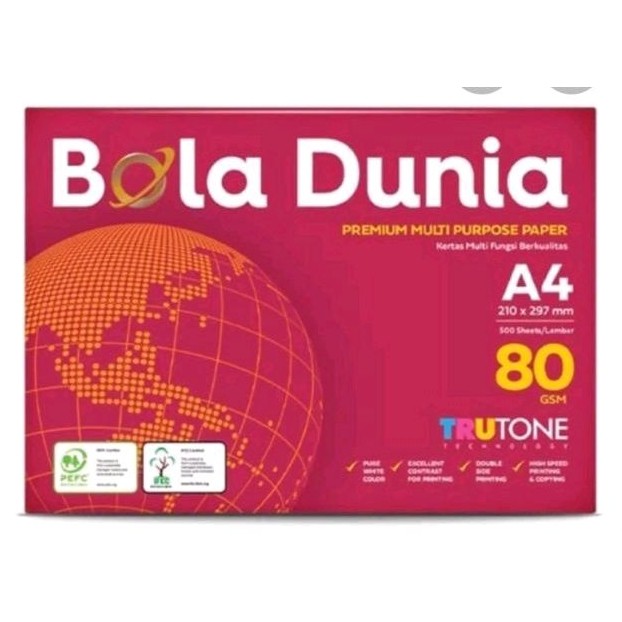 KERTAS HVS SIDU A4 , F4 , BOLA DUNIA A4 , F4 80 GRAM / RIM