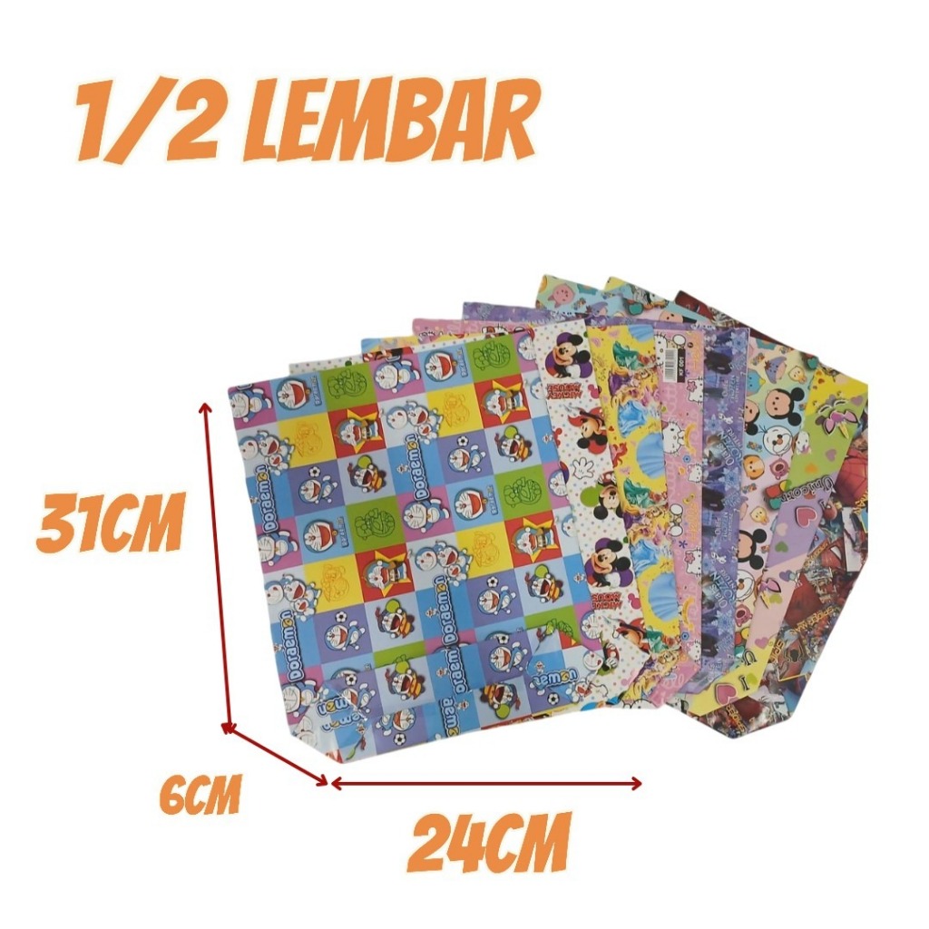 # UKURAN SATU SETENGAH LEMBAR BISA MEMBUNGKUS TAS UKURAN TK DAN SD DAN BARANG YG MAU DIBUNGKUS LEBIH DARI SATU