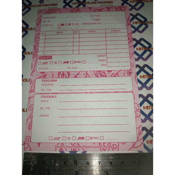 KERTAS LABEL PENGIRIMAN PLUS NOTA