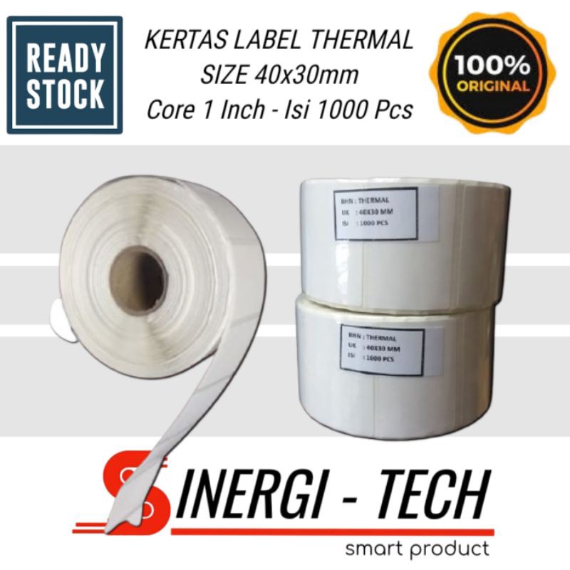 KERTAS LABEL THERMAL STICKER BARCODE 40x30 1 Line - 1000 Pcs Core 1 Inch