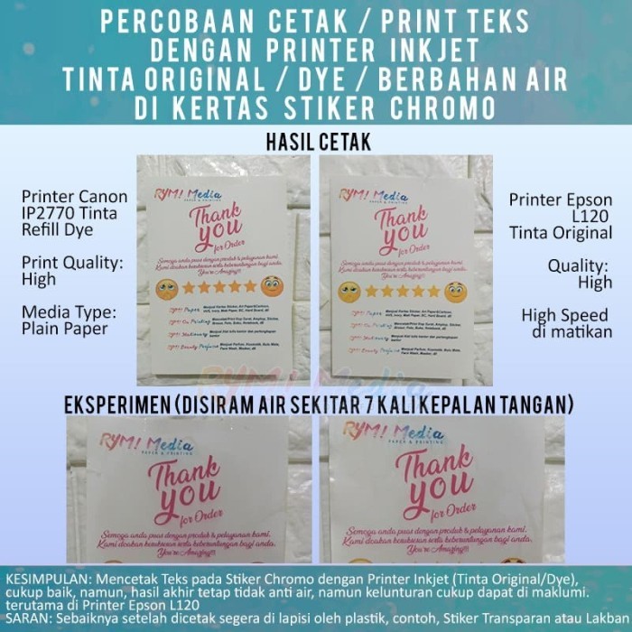 1) RYM! Sticker adalah STICKER BERKUALITAS TINGGI, hasil cetak dengan Kertas RYM! Sticker pasti memuaskan