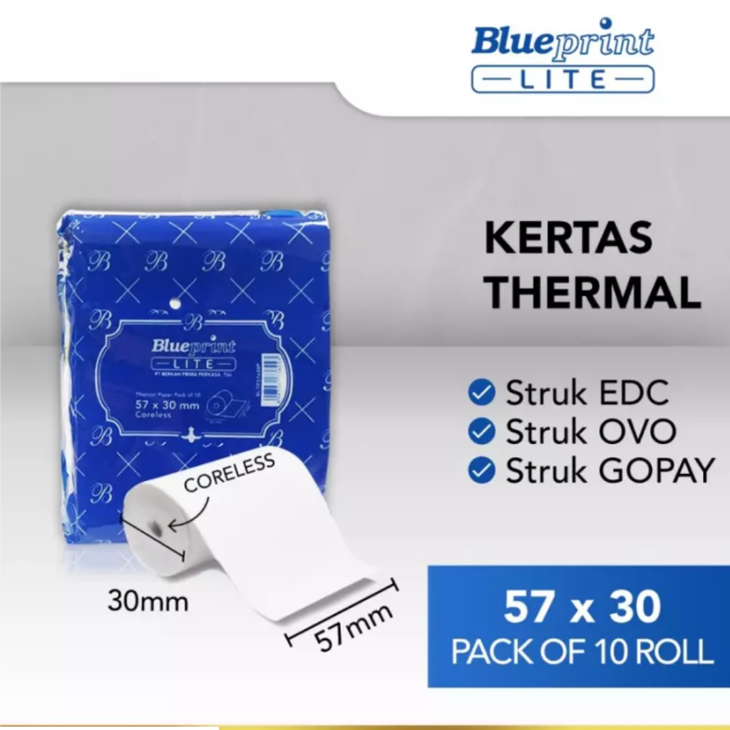 10 Roll Kertas Thermal Blueprint Lite 57mmx30mm