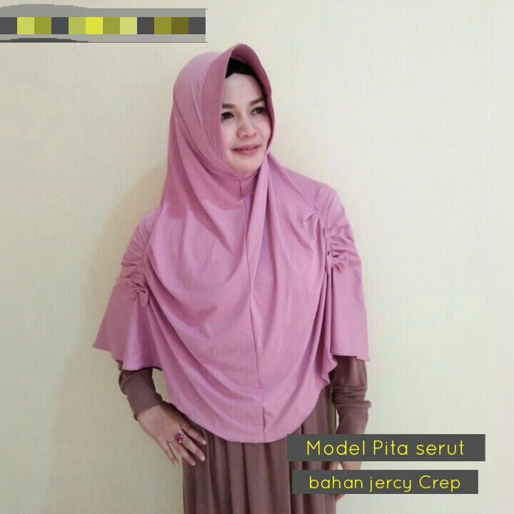 KERUDUNG MODEL PITA SERUT dengan bahan jercy crep yang mudah digunakan