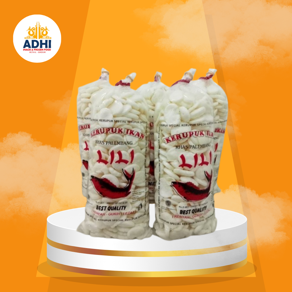 kerupuk yang terbuat dari bahan dasar ikan olahan , lezat dan nikmat disantap sebagai bahan menu tambahan makan siang anda..