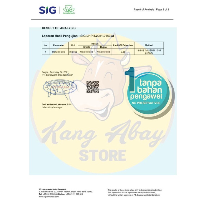 - Tanpa pengawet (telah teruji di laboratorium)