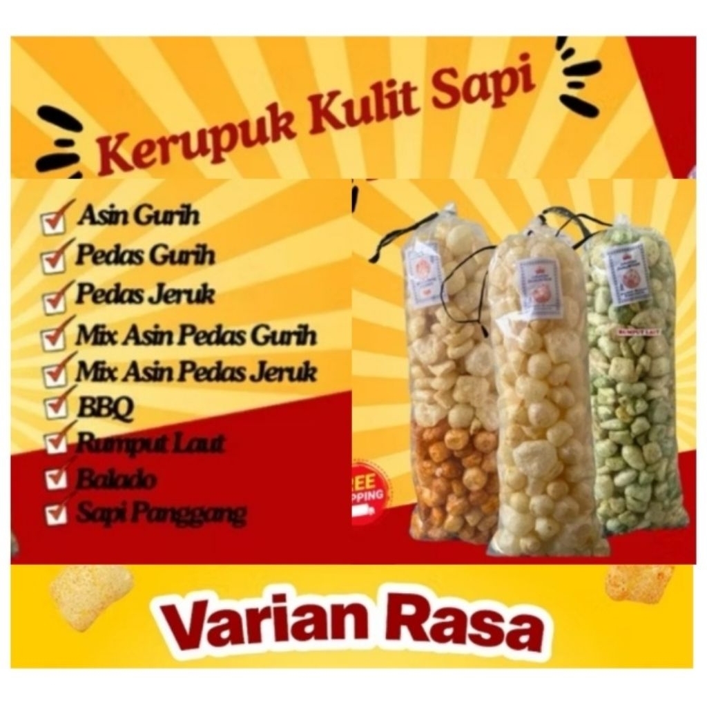KERUPUK KULIT SAPI RAMBAK SAPI ASLI DOROKDOK ANEKA RASA SUPER RENYAH 1 BAL