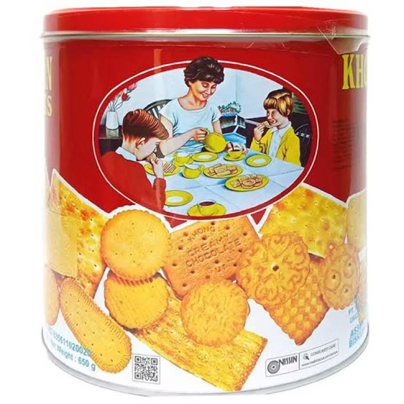 Khong Guan biskuit aneka rasa kemasan kaleng besar, produk dari PT. Khong Guan Biscuits Factory. Netto 650 gram 1 kaleng kena 1 kg