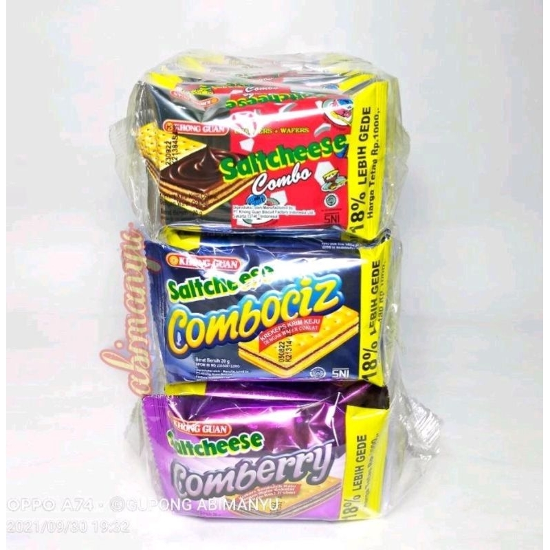 Khong Guan Saltcheese Combo merupakan salah satu varian Cream Sandwiches dari Khong Guan. Khong Guan Saltcheese Combo memadukan kombinasi crackers gurih, krim keju lezat, dan wafer coklat renyah yang dikemas praktis untuk menemani waktu kumpul dan santai bersama teman dan keluarga. Terbuat dari bahan-bahan pilihan berkualitas dan diolah secara higienis dan modern sehingga menghasilkan biskuit renyah yang terjamin kualitas dan rasanya. Kenikmatan combo dari biskuit, krim keju, dan wafer coklat membuat Khong Guan Saltcheese Combo ideal untuk dijadikan teman camilan baru Anda. Khong Guan Saltcheese Combo praktis dibawa dan dikonsumsi kapan dan di mana saja bersama teman atau keluarga. Khong Guan, Tak Asing Lagi dan Tak Ada Duanya.
