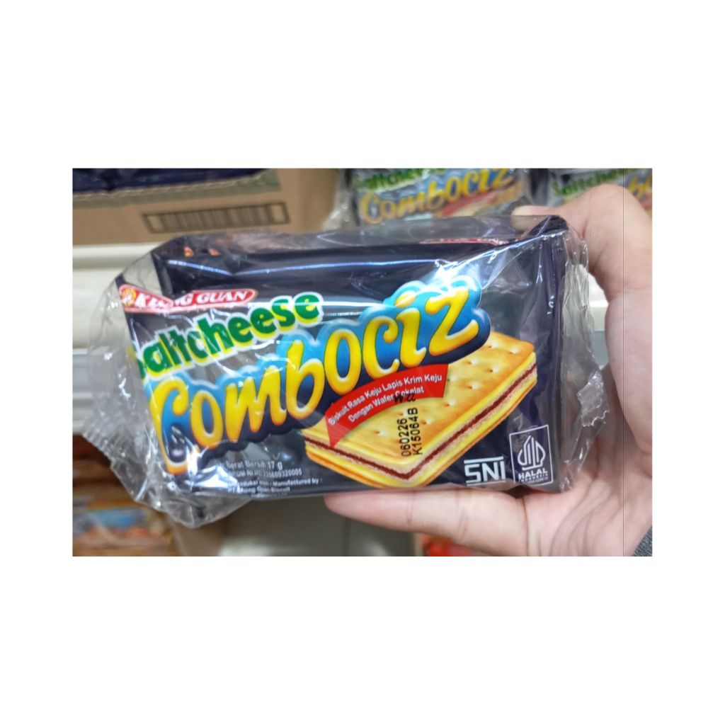 merupakan biskuit crackers dan waffer dengan lapisan coklat yang lezat dan aslinya keju berlapis-lapis, menjadikan Saltcheese Combociz produk terlaris dari Khong Guan. terbuat dari bahan pilihan dan terbaik kemasan praktis sehingga membuat khong guan saltcheese combociz dapat dibawa kemana saja dan kapanpun.