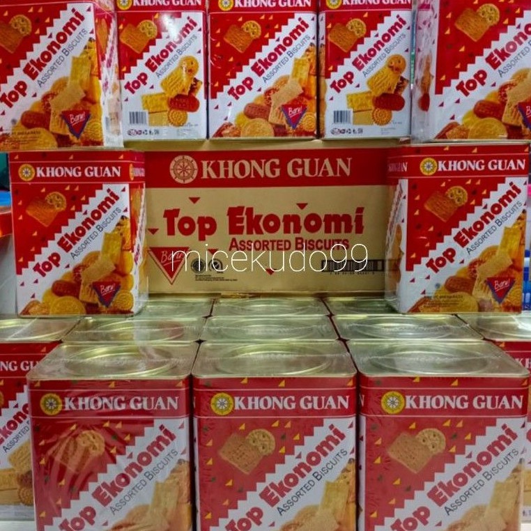 Biskuit legendaris Khong Guan. Di dalam biskuit Khong Guan Top Ekonomi ini anda akan mendapatkan beragam jenis biskuit dengan beragam pilihan dan rasa yang dapat anda pilih. Mulai dari wafer, biskuit dengan beragam rasa dan beragam jenis biskuit yang dapat anda pilih dalam satu wadah atau kaleng.