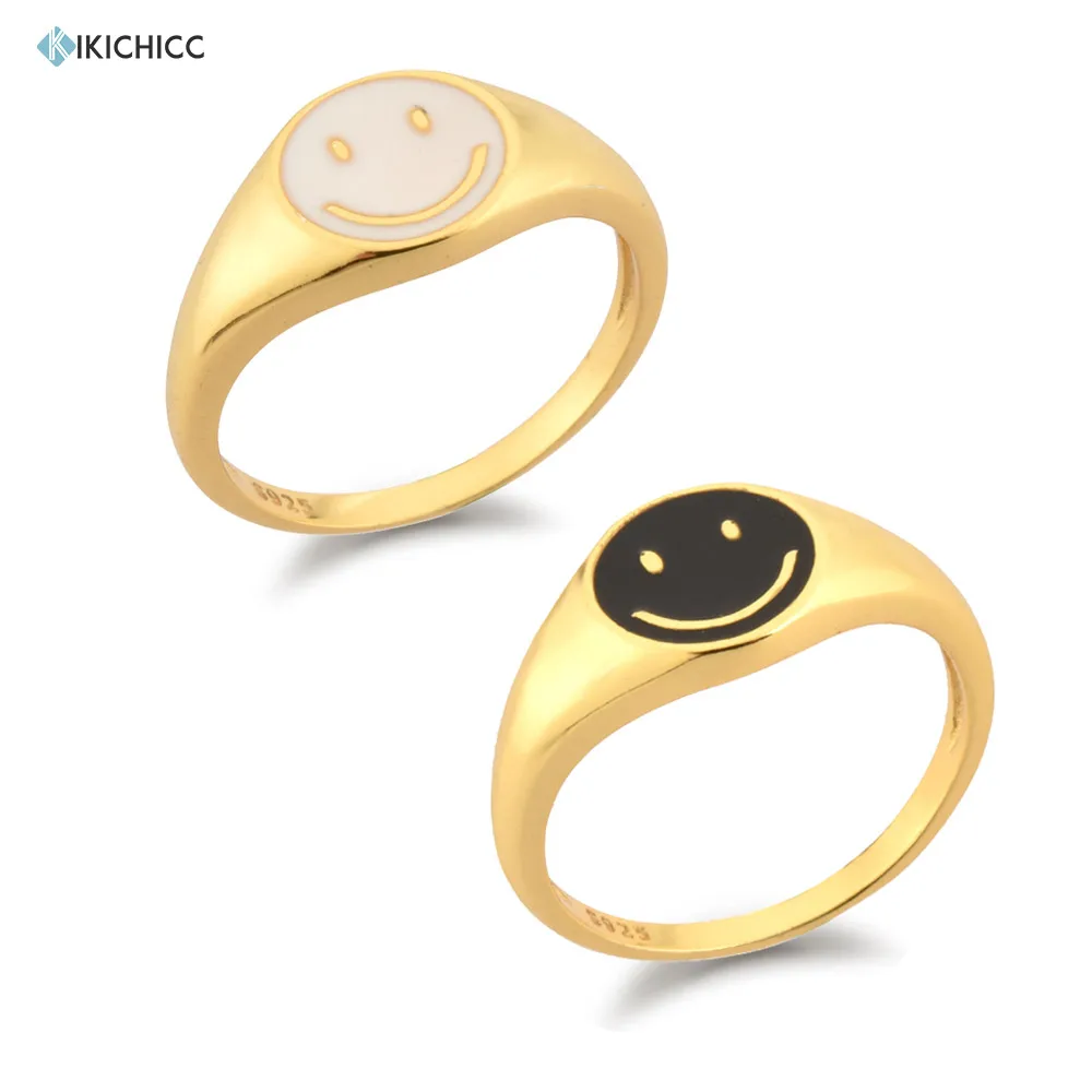 KIKICHICC 925 серебро золото Белый Черный Улыбка эмаль толстое кольцо размер роскошные весенние изысканные ювелирные изделия Красочные Женщины ...