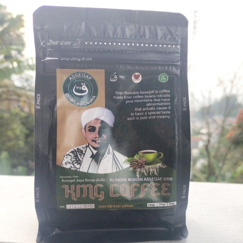 KING COFFEE ROBUSTA dari Habib Muhsin Assegaf KRM produksi Assegaf Jaya Group, dibuat dari Biji Kopi pilihan yaitu kopi robusta yang diproses secara higienis dan dikemas sesuai standar. Dengan komposisi Kopi Murni 100% menambah kenikmatan tersendiri bagi para pecinta kopi.