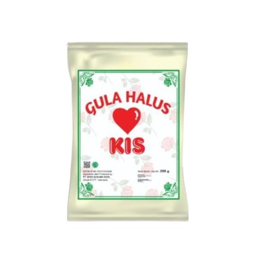 Gula halus dengan rasa yang manis dan tesktur seperti tepung Kemasan plastik asli pabrik Merk : KIS * Isi kemasan 250 gr