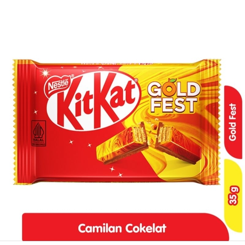 KitKat GOLDFEST edisi spesial dan terbatas.Dengan paduan cokelat lembut dengan rasa jeruk menyegarkan serta renyahnya wafer khas KitKat®, sangat cocok untuk perayaan momen spesialmu. Dengan visual gradasi produk merah kekuningan, tentunya semakin menggugah selera.