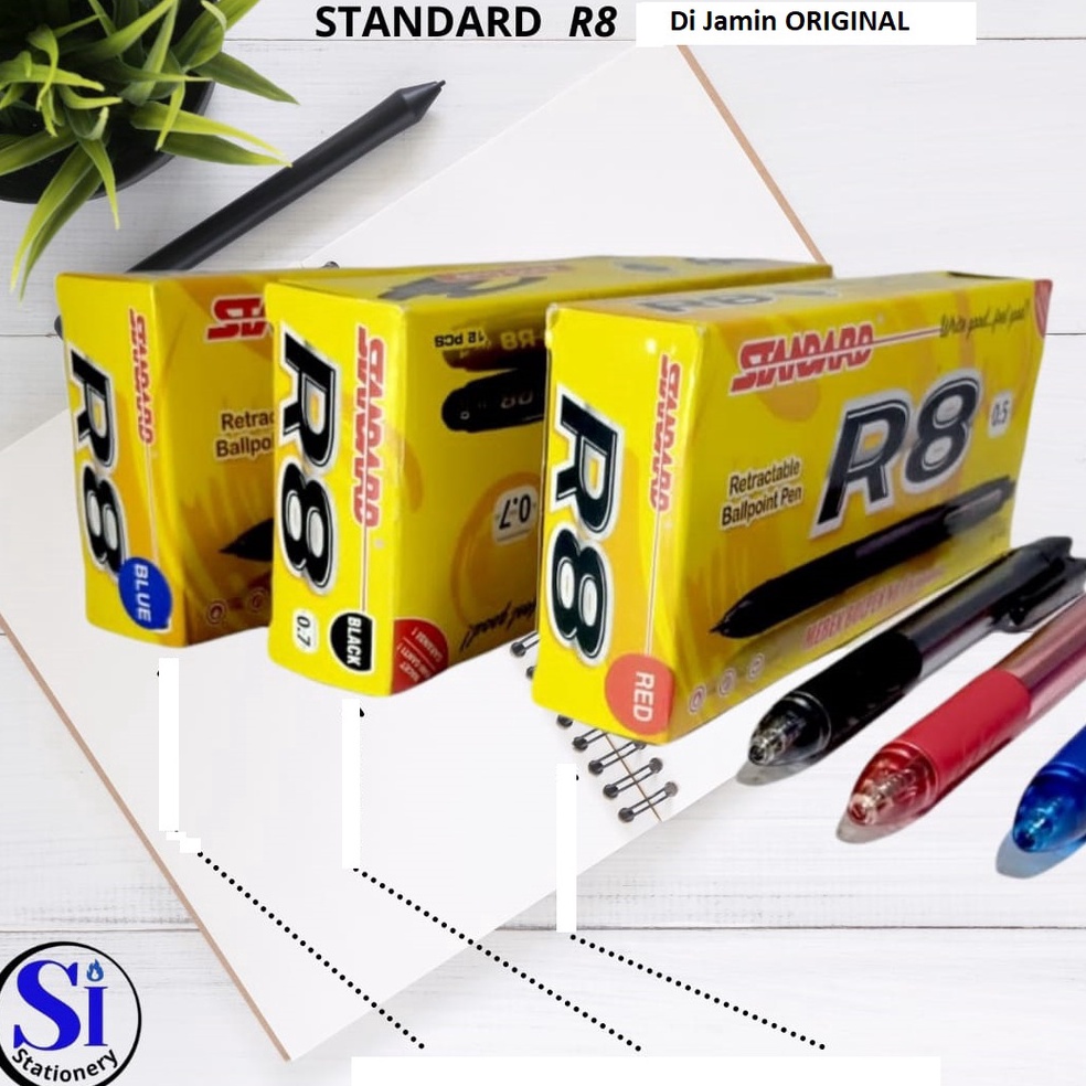 KODE O2H2 Pulpen Standard R8 7mm AsliStandard Pen R8 Original 1Pack isi 12Pcs