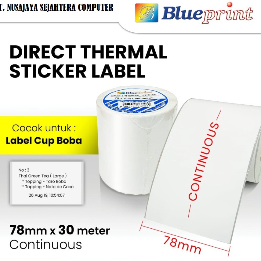 KODE R92A Direct Thermal Sticker Label Continuous BLUEPRINT 78x3 Meter