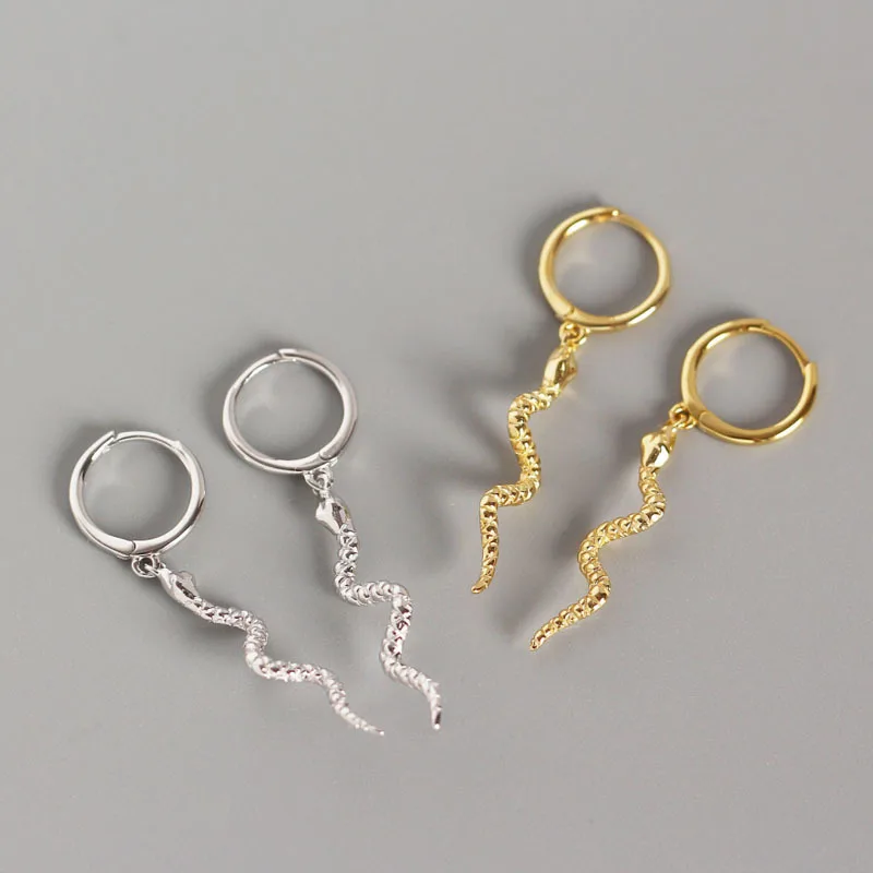 KOJ 925 Серебряные маленькие серьги в виде колец, с Змея мотаться Необычные S925 Стерлинговое плата Сережки для Для женщин рокер в стиле готик-па...