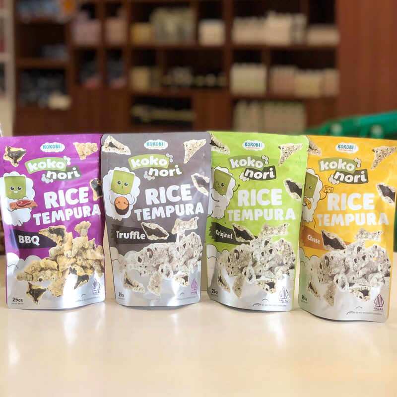 Kokonori Rice Tempura merupakan snack yang terbuat dari rumput laut yang memiliki tekstur renyah dan rasa yang gurih. Perpaduan antara Rumput Laut dengan Tepung Beras menghasilkan tekstur renyah seperti kerupuk dan dapat dimakan sebagai snack maupun makanan pendamping nasi.