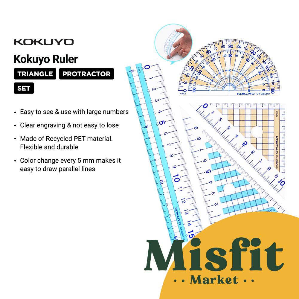 KOKUYO R-PET Ruler Straight | Protractor Triangle Penggaris Busur Segitiga Set