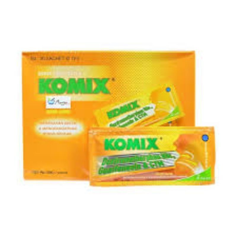 KOMIX RASA JAHE merupakan sirup batuk yang dikemas dalam sachet berukuran 7 ml dengan rasa Jahe. Obat ini mengandung Guaifenesin, Dextromethorphan HBr, dan Chlorpheniramin Maleate yang berkhasiat membantu meredakan batuk dan menghangatkan tenggorokan. KOMIX bekerja sebagai antitusif untuk mengurangi gejala batuk, antihistamin untuk meredakan batuk, dan ekspektoran untuk mengeluarkan dahak.