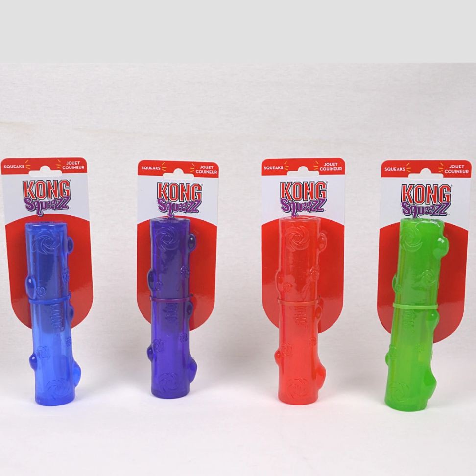 The KONG Squeezz Bone has a recessed squeaker that gives the safest and funnestsqueak of any toy out there. Great for games of fetch, the erratic bounce andsqueak guarantee tons of fun for you and your dog.-Perfect for games of fetch-Recessed/protected squeaker induces play-Comes in four vibrant colors: Ruby, Amethyst, Emerald, SapphireUntuk Small - Medium Breed